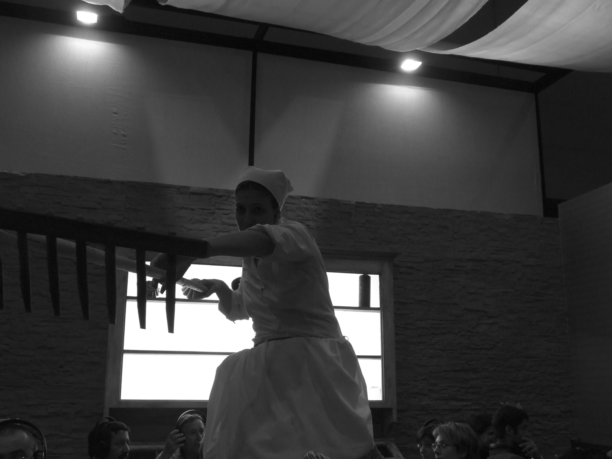 Tra una portata e l’altra, ogni commensale si trasforma – se lo vuole – in spettatore, semplicemente indossando le cuffie agganciante alla propria sedia.